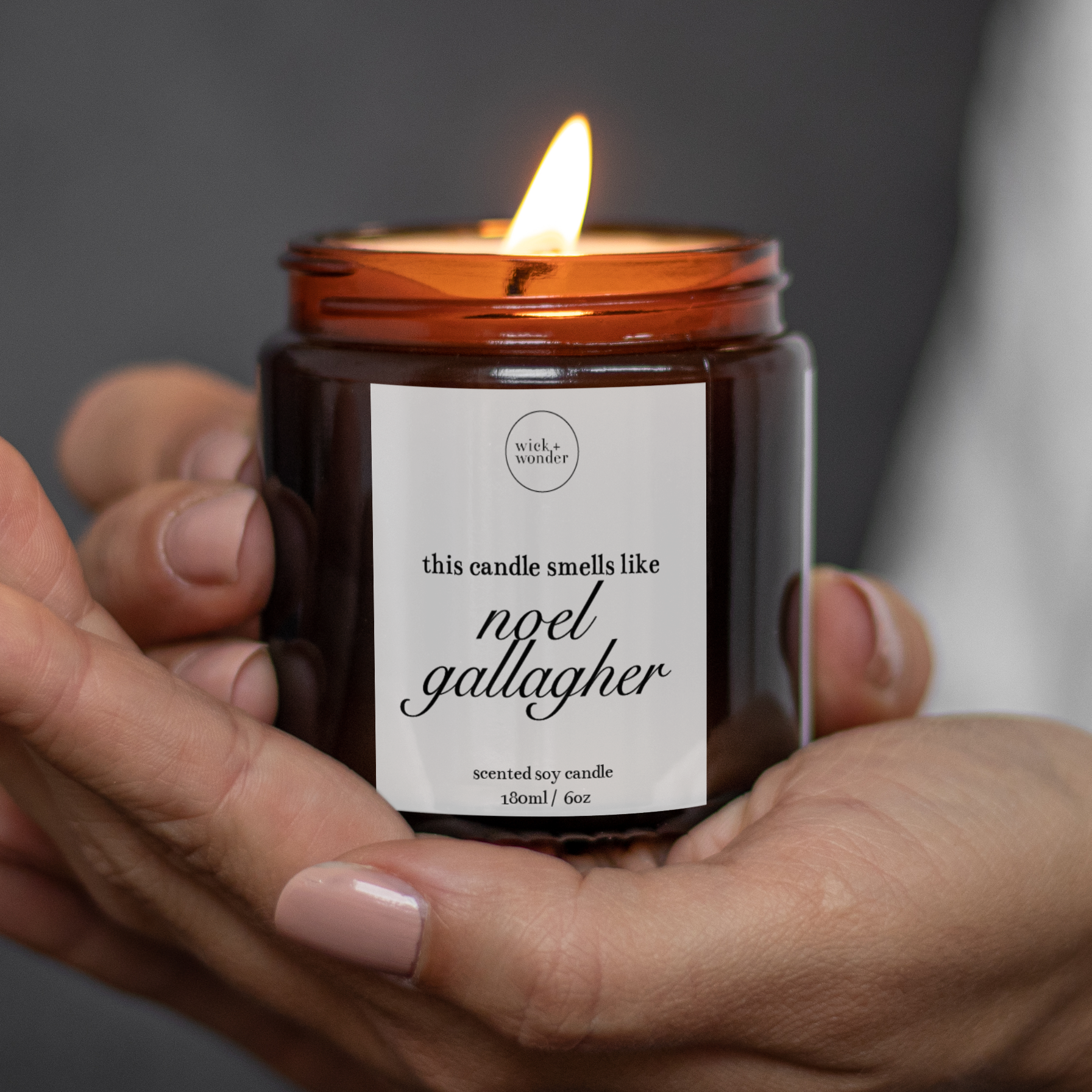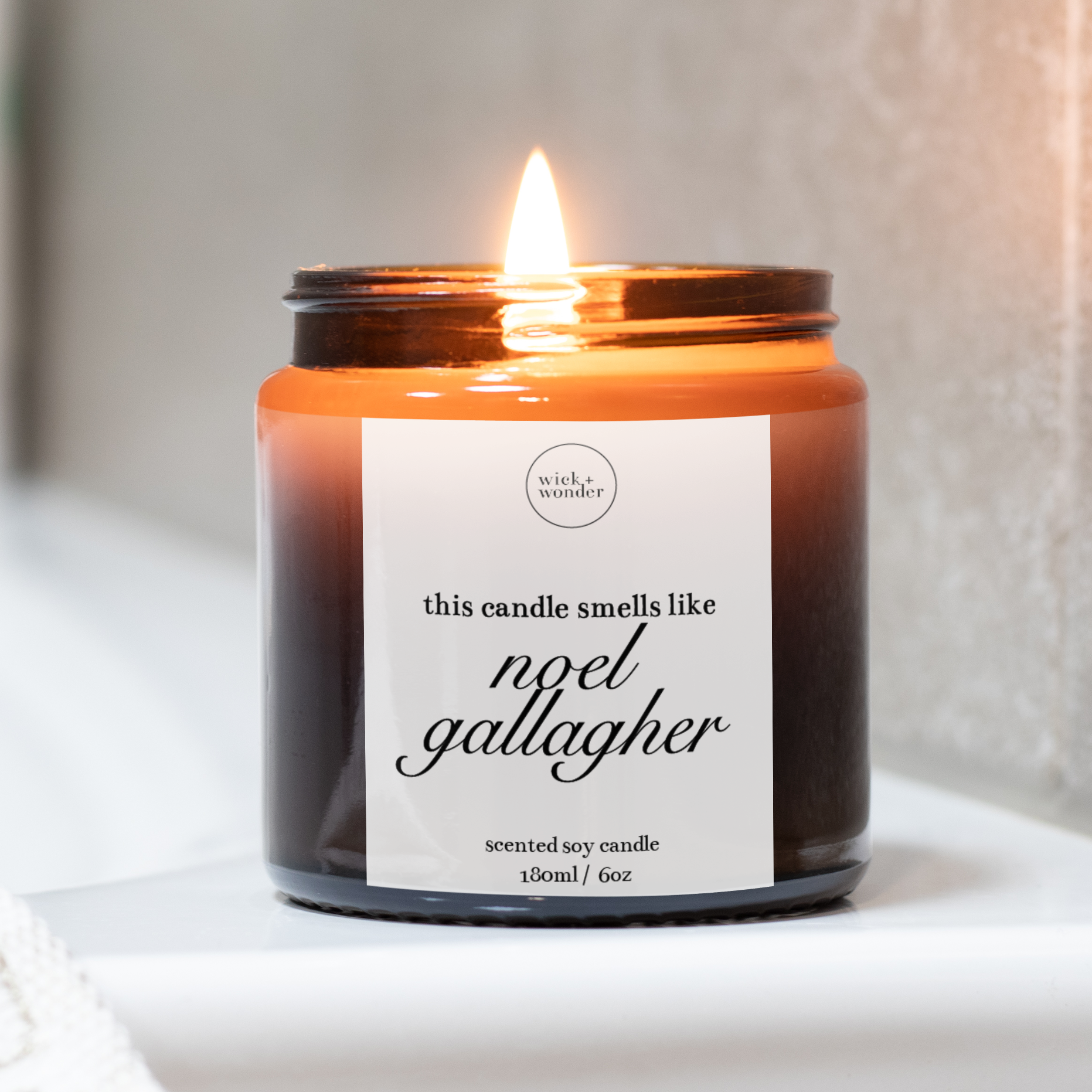 This 'Smells Like Noel Gallagher Candle' is the perfect gift for Oasis fans. Made with soy wax and luxury fragrance, our Noel Gallagher candle features a gorgeous, mystery scent inspired by the Oasis and High Flying Birds front man. Great for burning while listening to Oasis.